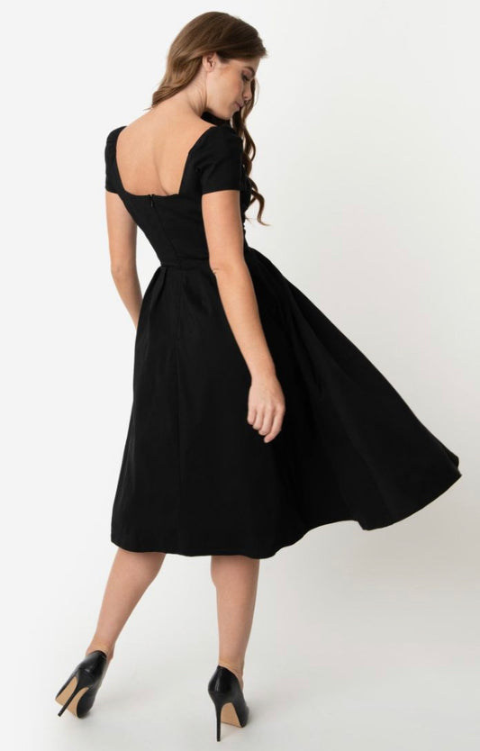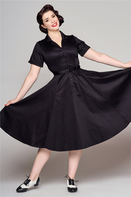 Caterina Plain Black Swing Dress by Collectif
