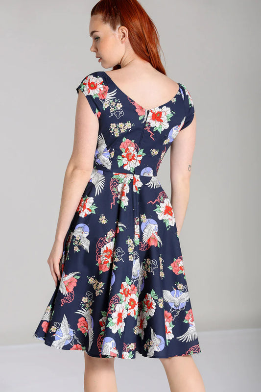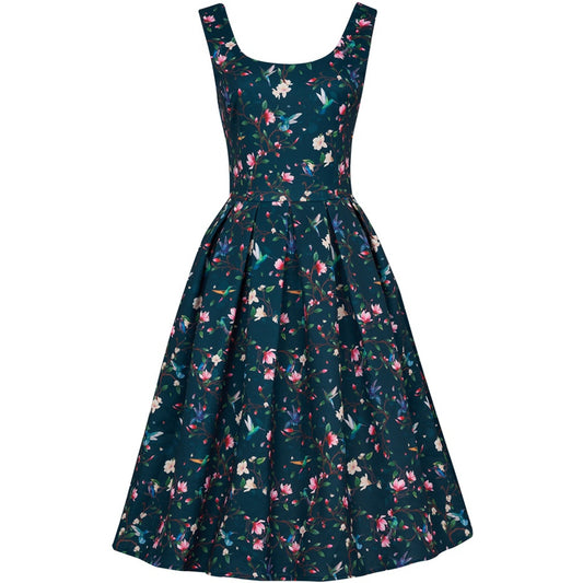 Amanda Swing Dress in Navy Blue Hummingbird Print by Dolly & Dotty