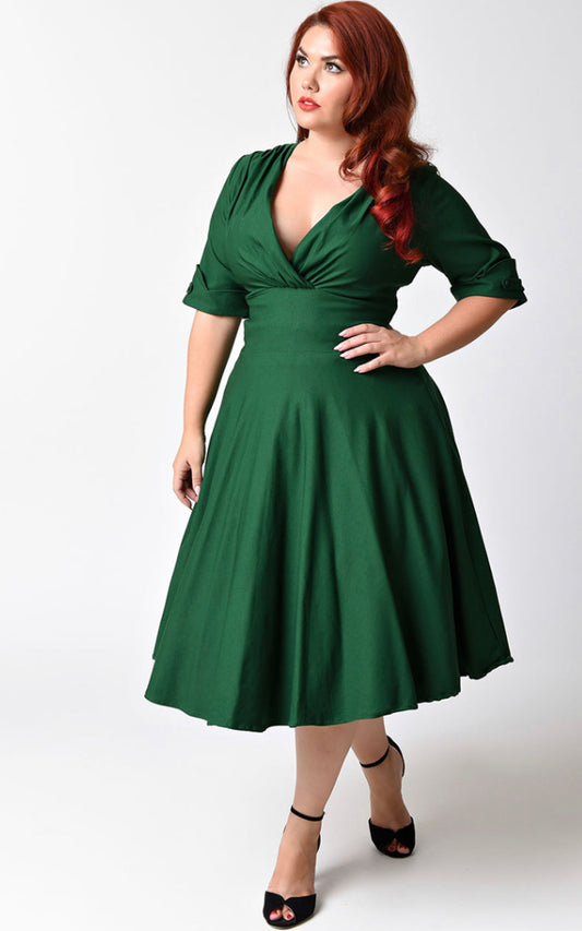 Delores 1950s Style Emerald Green Swing Dress by Unique Vintage