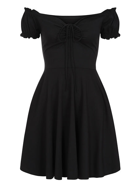 Sasha Plain Black Mini Flared Dress by Collectif