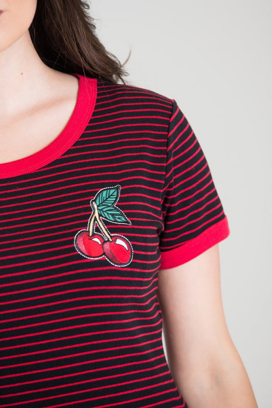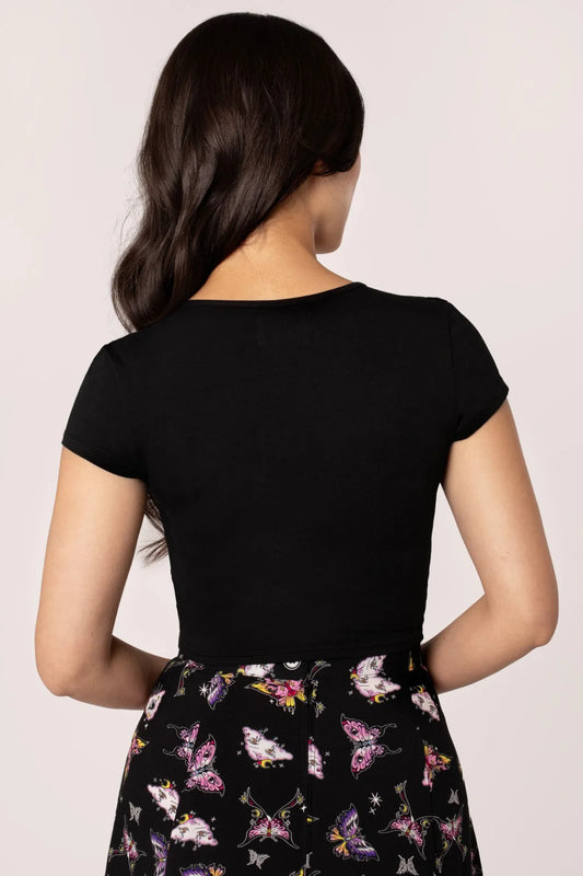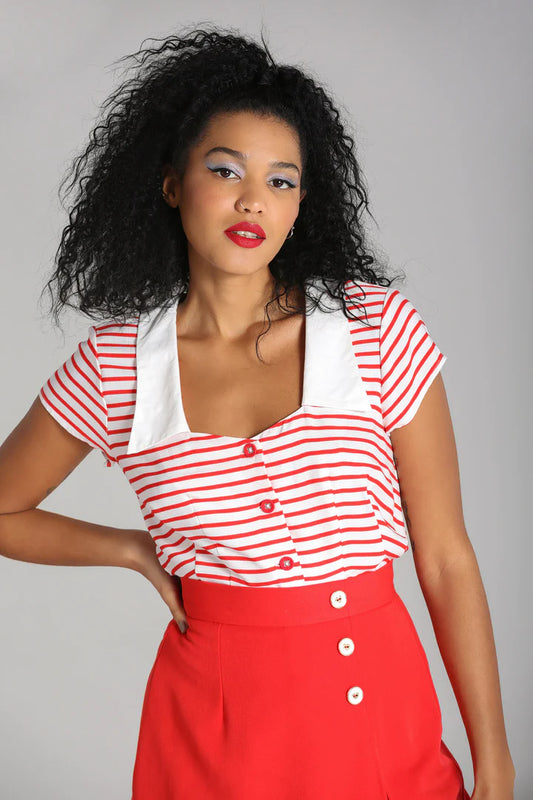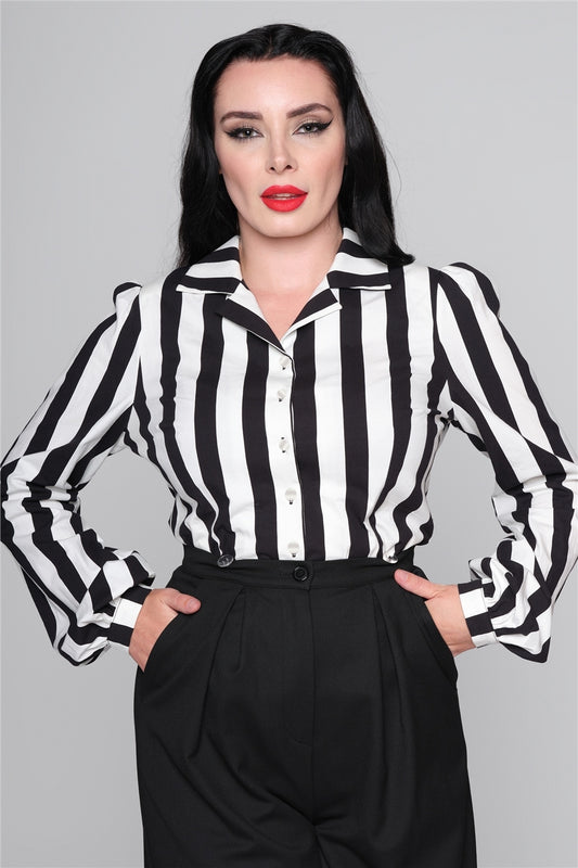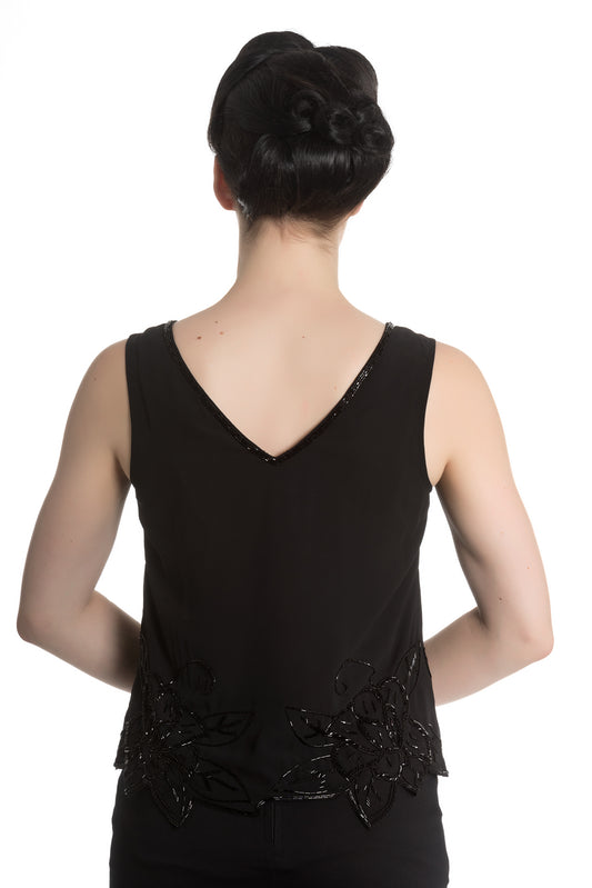 Vina Black Blouse with Embroidered Collar by Hell Bunny