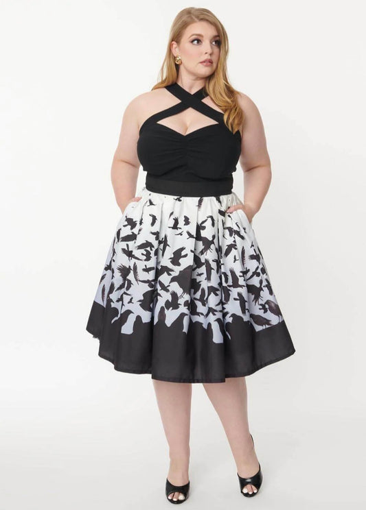 The Birds x Unique Vintage Birds Attack Print Main Attraction Swing Skirt
