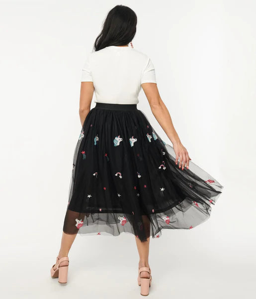 Hilty Black Tulle & Rainbow Unicorn Skirt by Unique Vintage