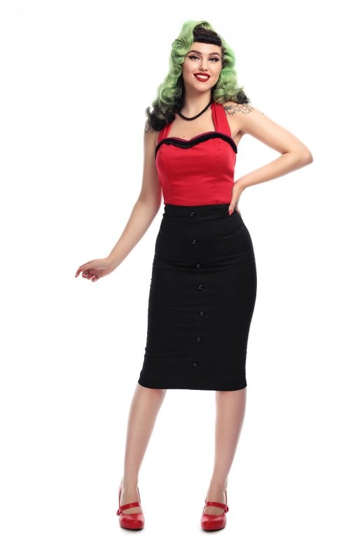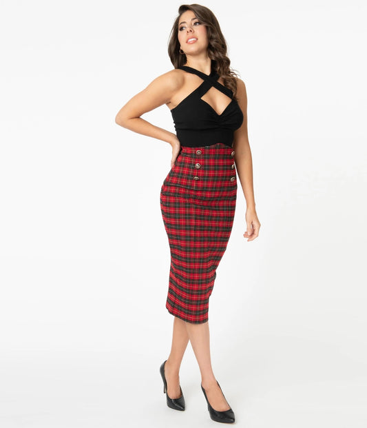 Red and Black Plaid Sailor Sierra Pencil Skirt by Unique Vintage