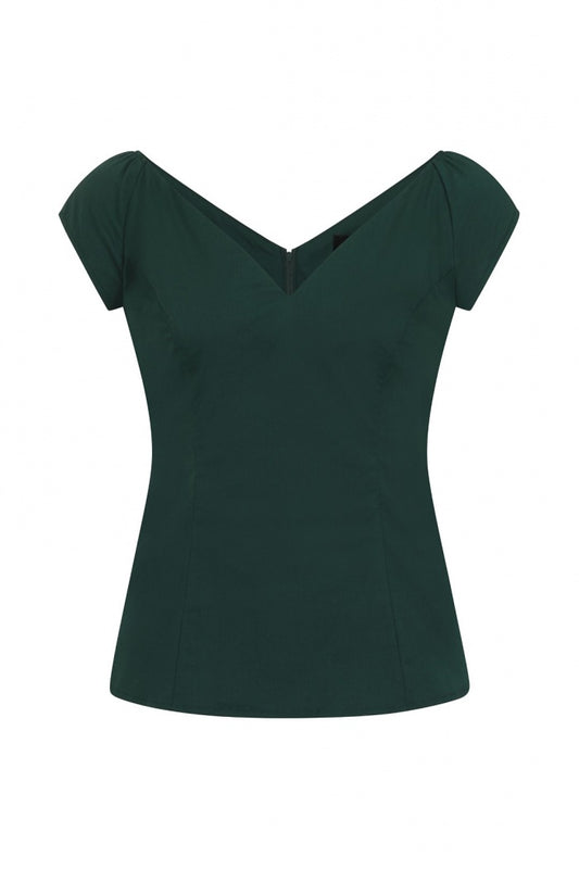 Petunia Top in Dark Green by Hell Bunny