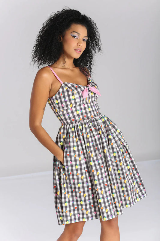 Fruity Lou Gingham Mid Dress by Hell Bunny