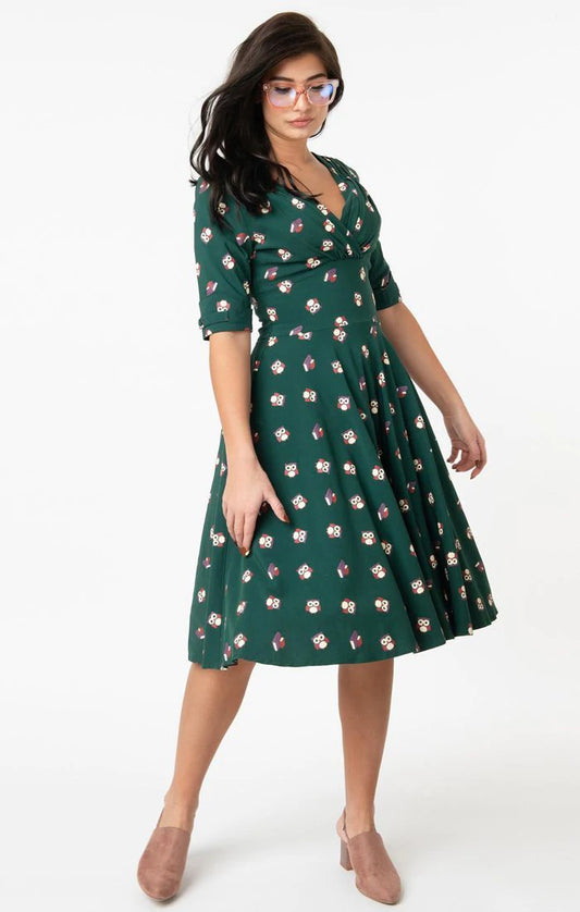 Delores Owl Bookworm Print Swing Dress by Unique Vintage