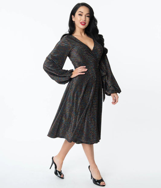 Multicolor Metallic Liliana Wrap Dress by Unique Vintage