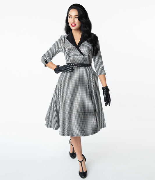 Trudy Houndstooth Swing Dress by Unique Vintage