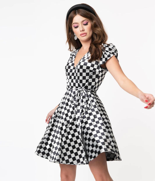 Girl Power Checkerboard Velvet Flare Dress by Unique Vintage