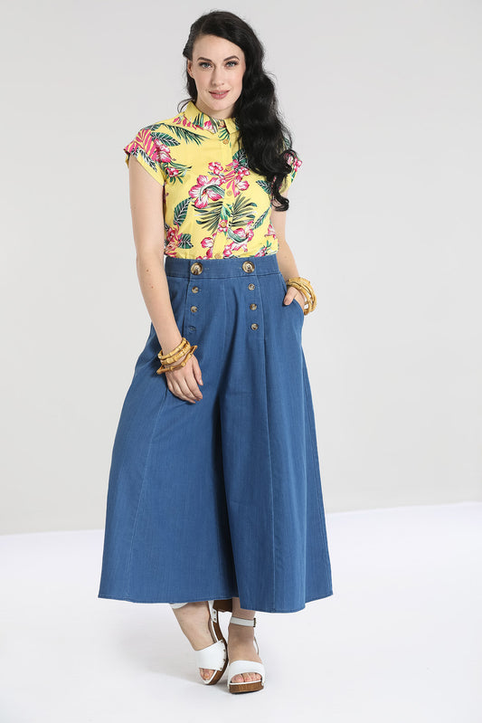 Jill 70s Inspired Light Blue Denim Jeans by Hell Bunny