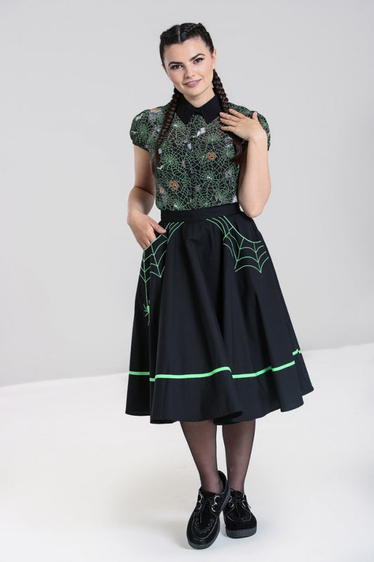 Miss Muffet 50s Skirt in Black and Green by Hell Bunny