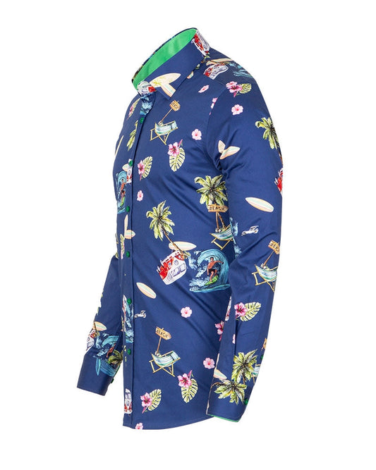 Blue Beach Print långärmad skjorta i ren bomull från Oscar Banks