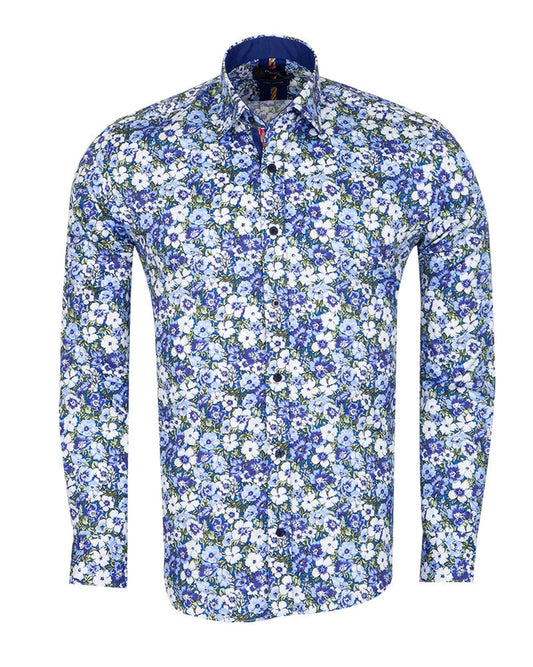 Blå vallmotryck herrskjorta med matchande näsduk från Oscar Banks