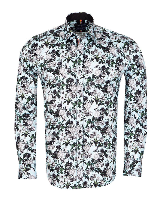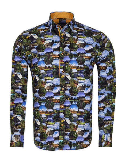 Ren bomull hexagonal naturtryck herrskjorta från Oscar Banks