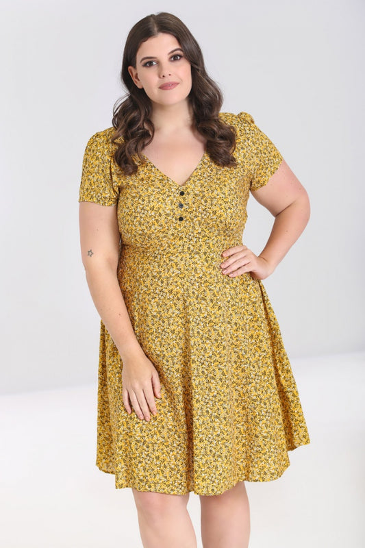 Corey Yellow Tartan Mini Dress från Hell Bunny