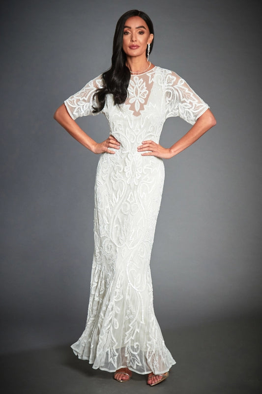 Barockmotiv glitter tryckt off the Shoulder Mermaid Dress från Cinderella Divine